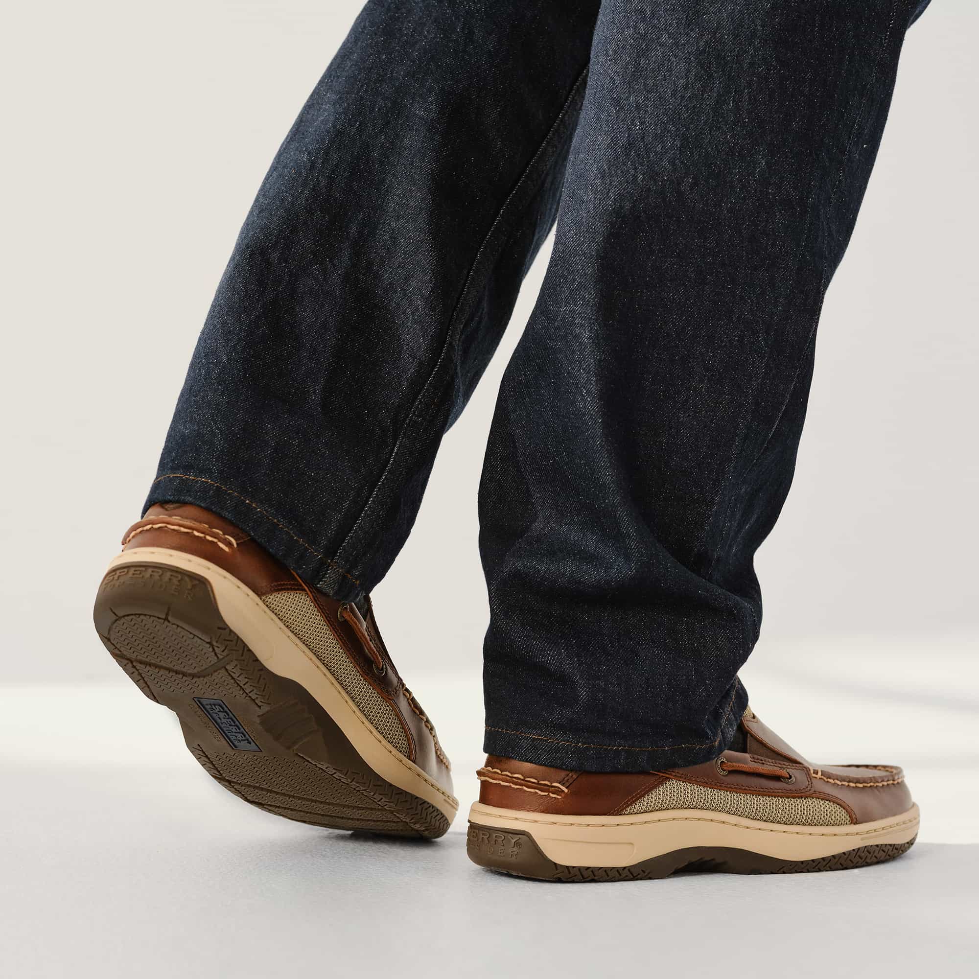 The mens’ Billfish Slip-On sees our iconic boat shoe reimagined with an emphasis on comfort and convenience. A sportier silhouette is crafted from premium leather. with mesh panelling for breathability. a full-length cushioned midsole for superior comfort and support. and our famous Wave-Siping? outsole for wet and dry traction. Elastic detailing makes these easy to slip on or off at a moment’s notice. so you’re always ready to make the most of your day. whether you’re wearing them with deck shorts at sea or with jeans on dry land.